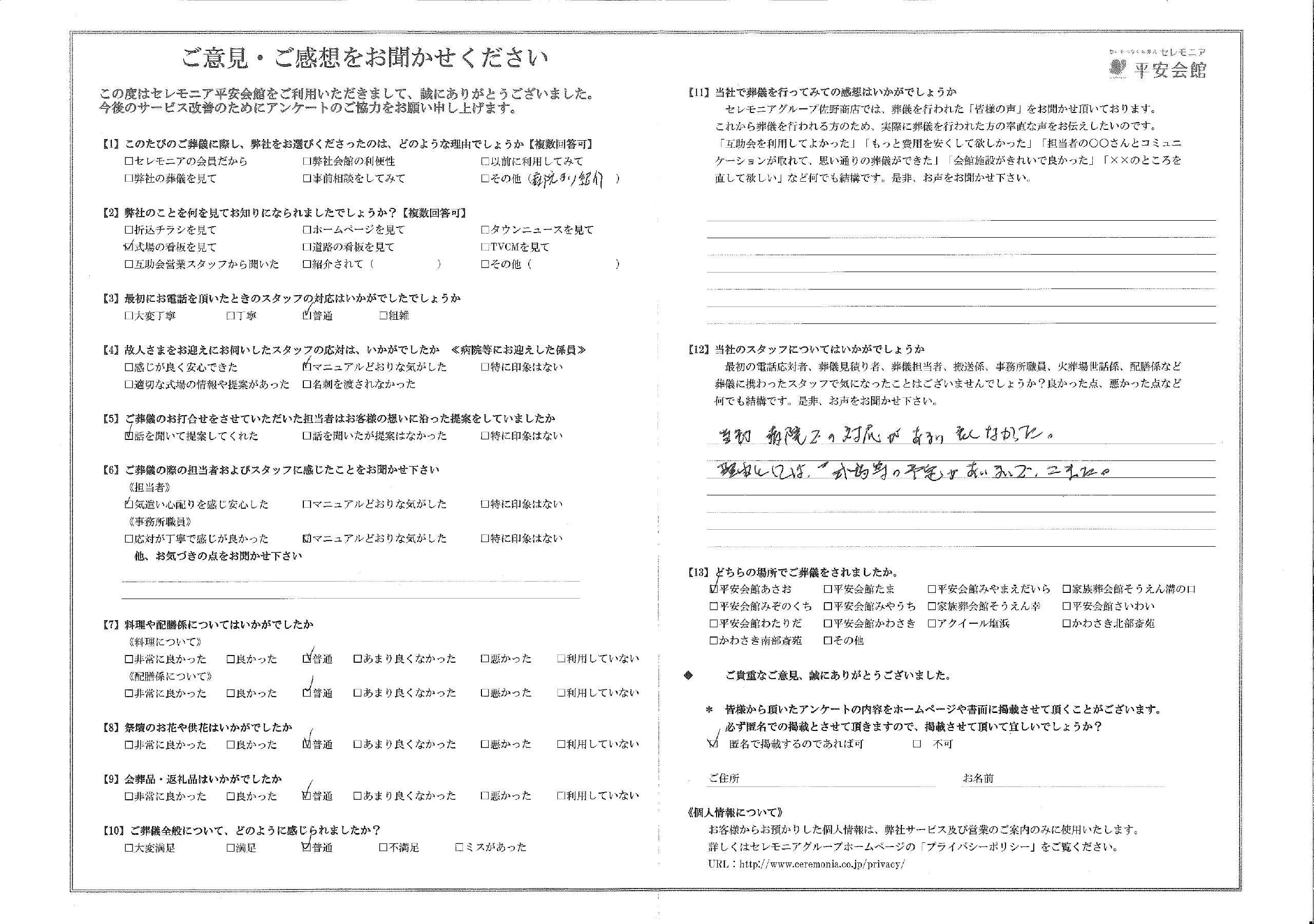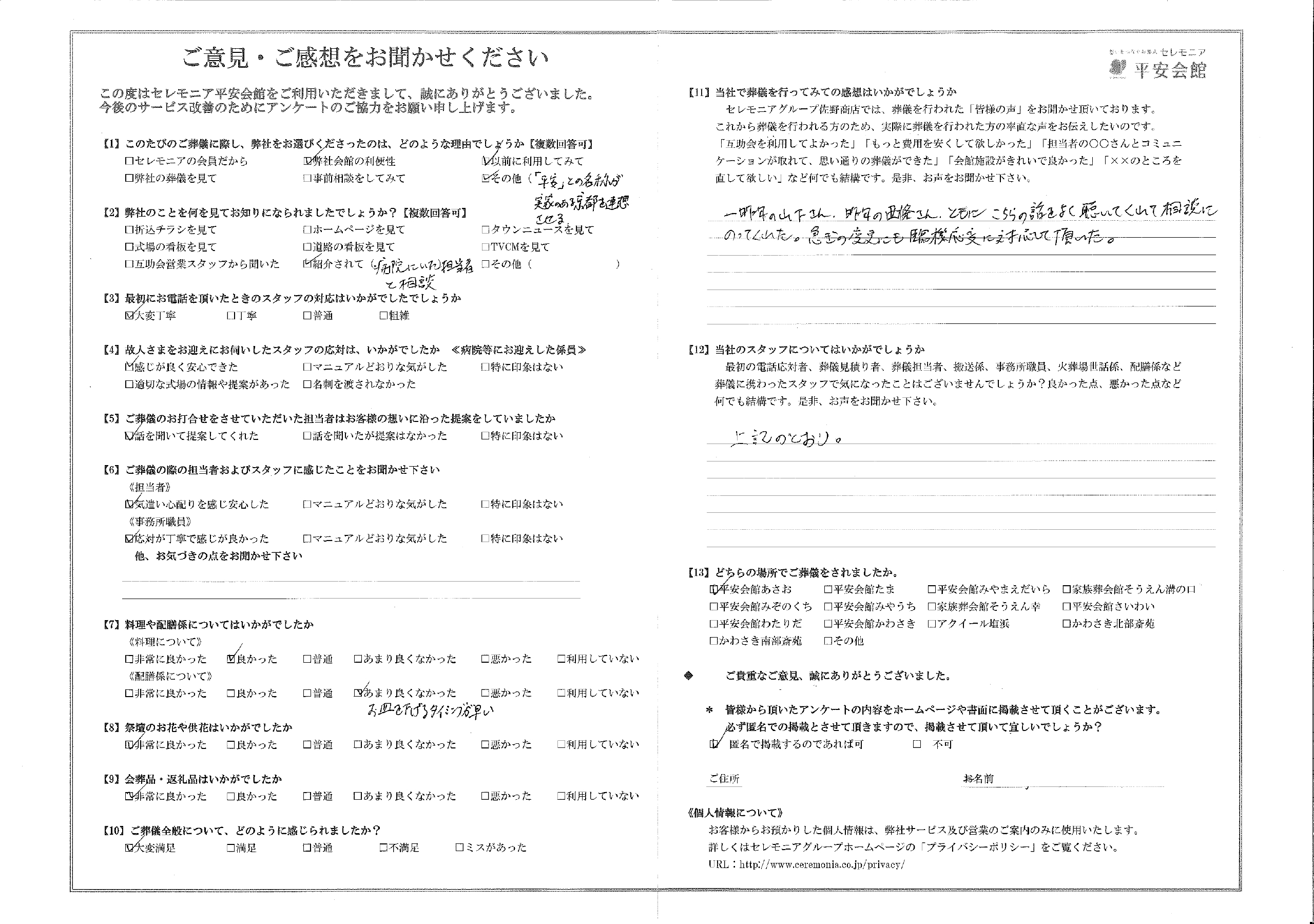 平安会館をご利用いただいたお客さまより、感謝のお声を頂きました